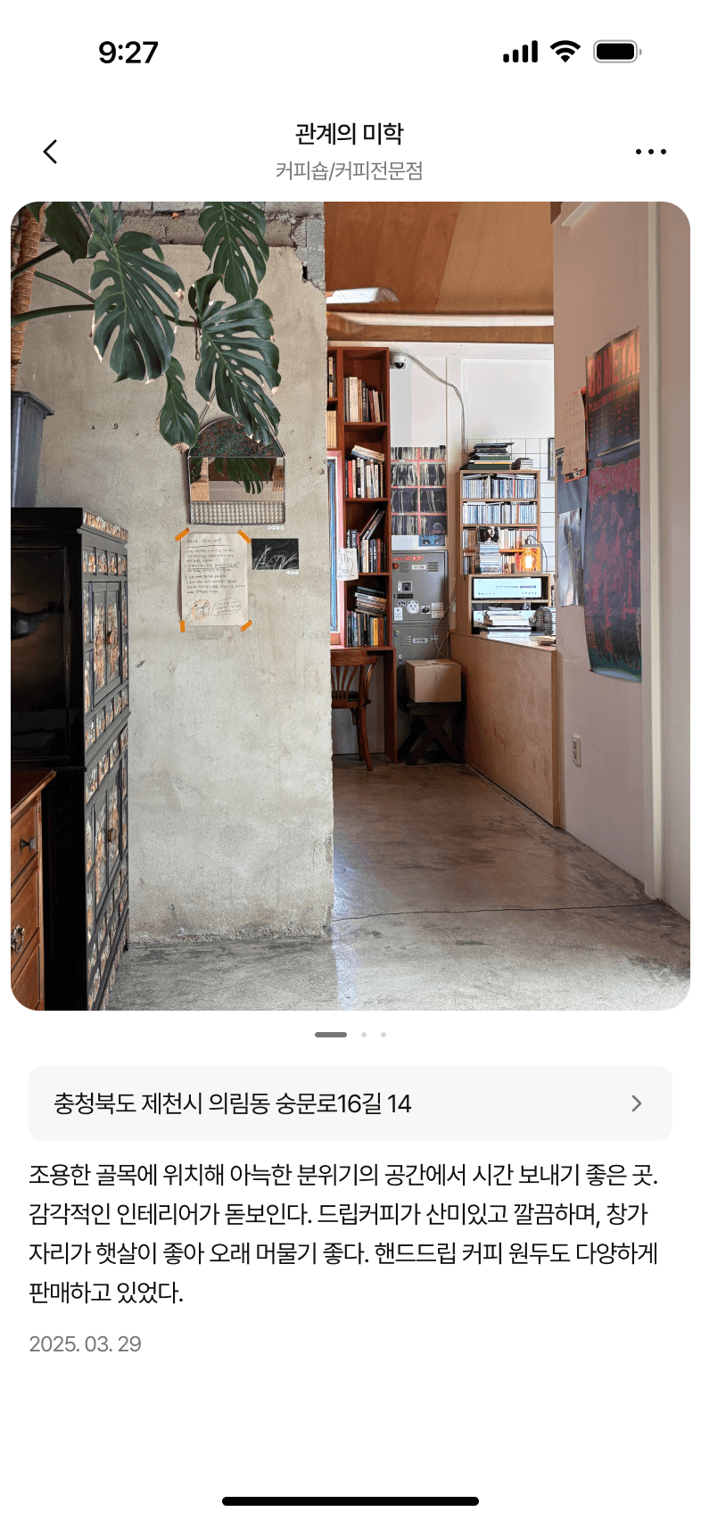 "최근에 다녀온 카페나 맛집 정리할 때 사용해요. 지도에 다 뜨니까 헷갈릴 일이 없네요."